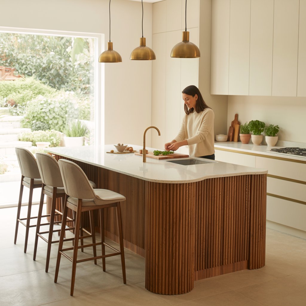 Adding texture is a huge trend! Fluted wood or glass on cabinet doors or islands, ribbed tile backsplashes, or even textured plaster walls bring incredible depth and tactile interest. It breaks up flat surfaces beautifully.