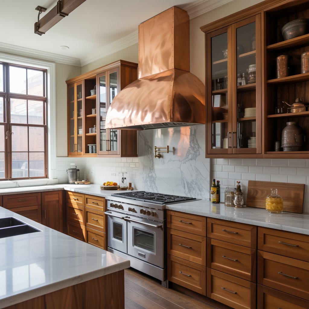- Personal Fave: A beautifully patinaed copper hood adds instant warmth and character. IMO, it beats a boring stainless box any day.