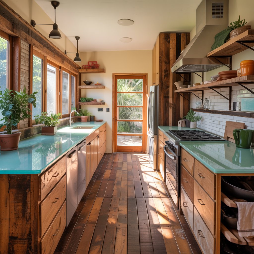 Eco-conscious is in. Think reclaimed wood accents, countertops made from recycled glass or paper composite, bamboo flooring, and cabinetry from sustainably sourced timber. It’s good for the planet and brings beautiful, unique texture.