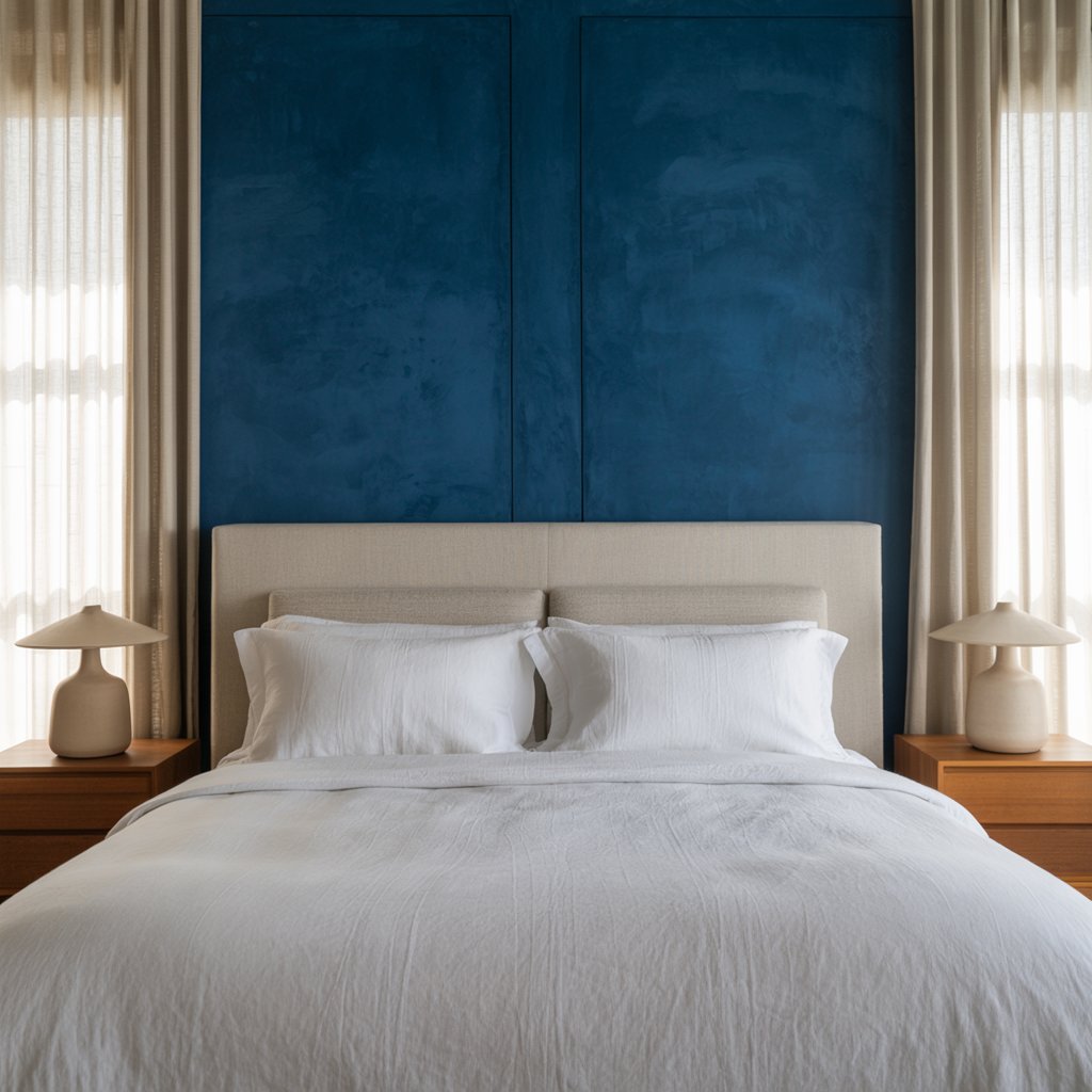 Don’t want to commit to painting the whole room? Pick one wall – usually behind the bed – and go bold or deep. Navy, emerald green, terracotta… it adds drama without overwhelming.