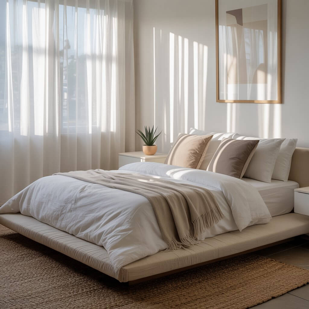 Platform beds or mattresses on minimalist frames sit closer to the ground. They make ceilings feel taller and rooms feel grounded.