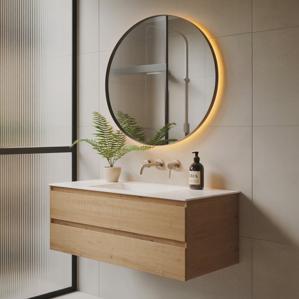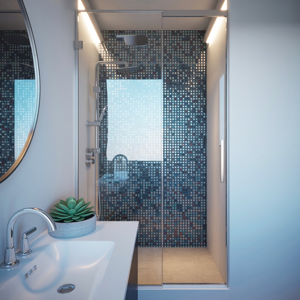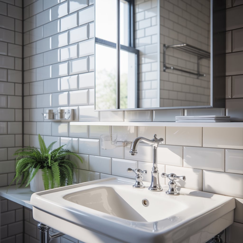 - Pro Move: A glossy tile splashback behind the sink or in the shower adds sparkle and depth without bulk. Just keep the grout lines minimal.