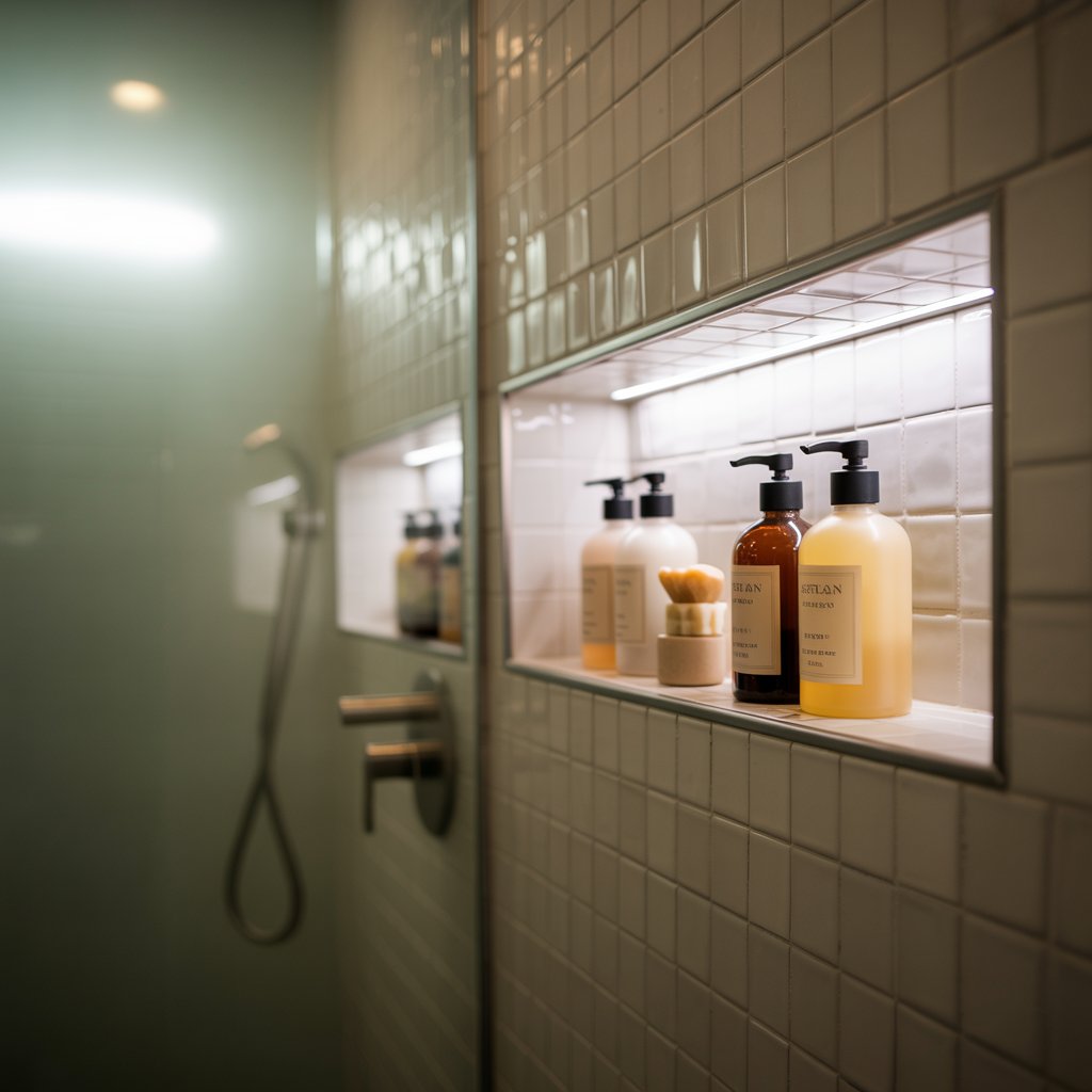 Bulky shower caddies or soap dishes sticking out steal precious inches. Build recessed niches into your shower wall or above the vanity.