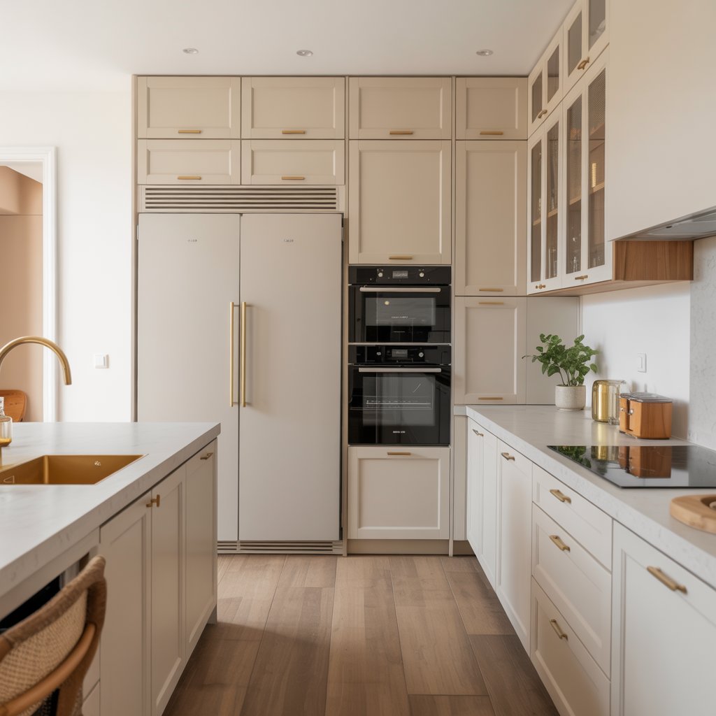 Integrated appliances are your secret weapon for a sleek, seamless look. Fridge panels that match your cabinetry, dishwashers hidden behind cabinet fronts, ovens tucked neatly into tall units.
