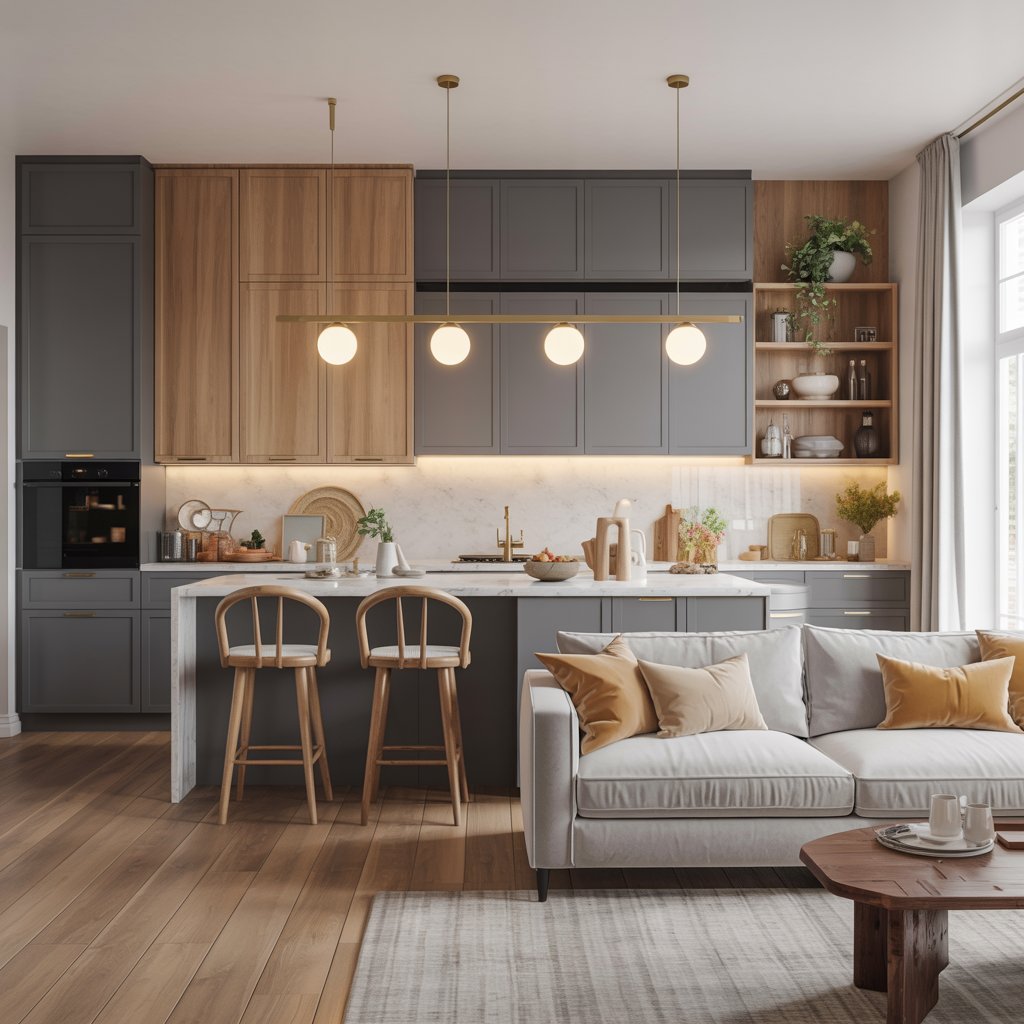 - Personal Take: I’m currently obsessed with warm greys and oak tones. It feels modern but still inviting, and transitions perfectly from kitchen island to comfy sofa. IMO, it’s timeless.
