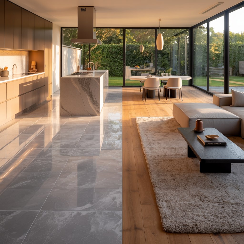 - Personal Fave: Large-format tiles in the kitchen flowing into engineered wood for the dining area. Creates a clean transition and handles spills like a champ. Win-win!