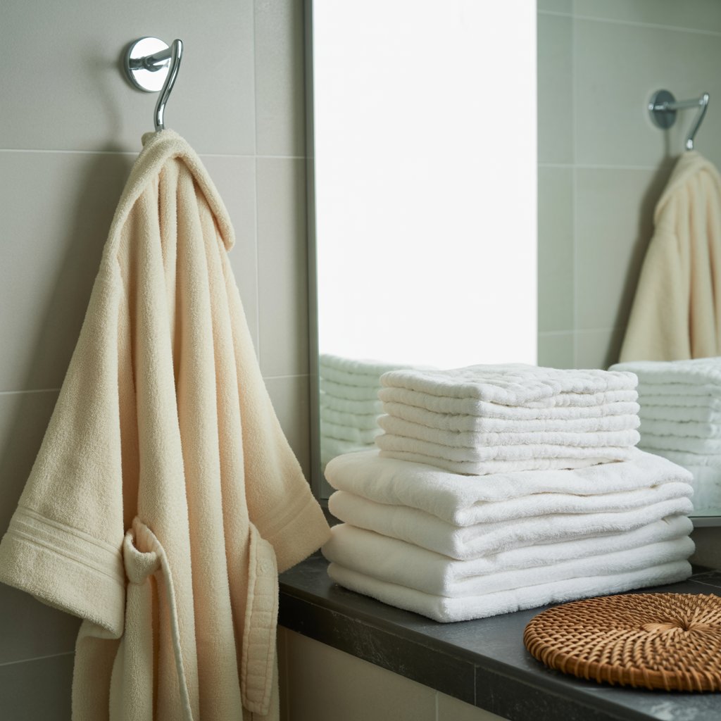 Scratchy towels? No thanks. Invest in thick, thirsty cotton or bamboo towels – the bigger and fluffier, the better. Add a super-soft bath mat you can sink your toes into. A cozy robe hanging nearby completes the pampered feel.