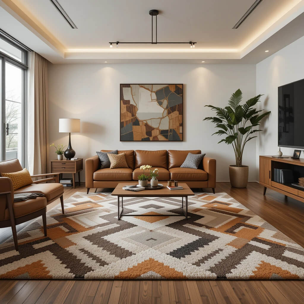Anchor your space with a rug featuring bold geometric patterns – think zigzags, diamonds, or abstract organic shapes. Opt for a wool blend for durability and that perfect texture.